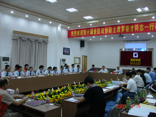 在觀看了公司發(fā)展歷程的影視片后,羅豪才副主席發(fā)表了重要講話。他說,這次廣州之行共考察了三家企業(yè),前兩家都是國有大型企業(yè),分別是廣州鋼鐵廠和廣州廣船國際股份有限公司,國研機械是我們調研的唯一一家民營企業(yè),看到你們國研人精神振奮,生產(chǎn)經(jīng)營狀況良好,尤其是看到你們外來務工人員生活、工作都比較滿意時,我們感到很欣慰,國研機械在不到十年的時間里發(fā)展成集團化的規(guī)模,而且發(fā)展勢頭很好,真的很不容易,只要你們繼續(xù)努力,企業(yè)一定能夠做強做大。目前我們國家越來越重視民營企業(yè),也越來越關心我們外來工的生存與發(fā)展的問題。你們提出了很多具有代表性的建議,這些建議提的很好,很典型,我會把這些寶貴的建議帶回去。