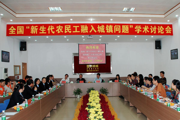 11月8日上午,由廣州市社會科學屆聯(lián)合會、廣州大學廣州發(fā)展研究院、廣州大學人權研究中心主辦的全國新生代農(nóng)民工融入城鎮(zhèn)問題學術研討會在廣州市國研機械設備制造有限公司隆重召開。中國社科院及全國多所知名高等院校專家、學者齊聚一堂,就新生代農(nóng)民工融入城鎮(zhèn)問題與我司員工代表暢所欲言、各抒己見,展開了熱烈的討論。