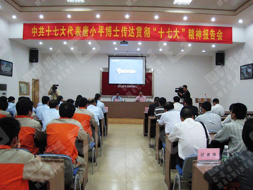 11月14日下午,陽光燦爛,秋風送爽,在喜慶的鑼鼓和歡聲笑語中,座落于廣州市天河區(qū)珠吉街的廣州市國研機械設備制造有限公司迎來了黨的十七大代表唐小平博士。唐小平代表面對國研公司黨支部全體黨員和公司全體員工,作了一場豐富詳實、精彩生動的報告。珠吉街黨工委、辦事處領導班子成員、街屬各支部書記、以及天河區(qū)委組織部、區(qū)委宣傳部的有關負責同志應邀出席了報告會。