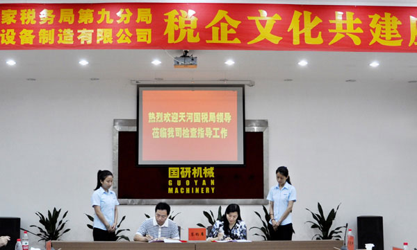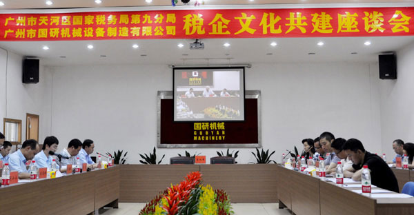 5月28日下午,廣州市天河國稅進出口稅收管理科、天河國稅第九分局和廣州市國研機械設備制造有限公司“稅企文化共建座談會”在國研機械大會議室隆重召開。天河國稅區(qū)局領導黃捷洪紀檢組長、賴建華總經(jīng)濟師和區(qū)局相關科室、進出口稅收管理科、九分局等領導出席了此次座談會。