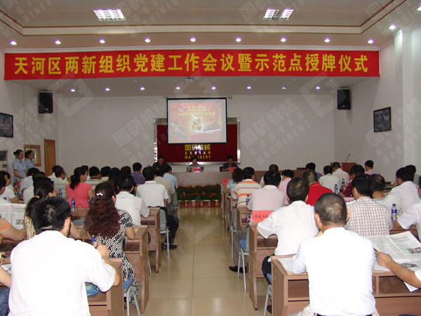 7月2日下午,天河區(qū)“兩新組織”黨建工作現(xiàn)場(chǎng)會(huì)暨黨建工作示范點(diǎn)授牌儀式在廣州市國(guó)研機(jī)械設(shè)備制造有限公司隆重舉行。天河區(qū)委常委、組織部部長(zhǎng)潘文捷、廣州市委組織部組織處處長(zhǎng)邱培藩、天河區(qū)委組織部副部長(zhǎng)陳璋、公司董事長(zhǎng)兼總經(jīng)理王聲位、珠吉街黨工委書記杜黨勇、辦事處主任周國(guó)棟等出席了會(huì)議。