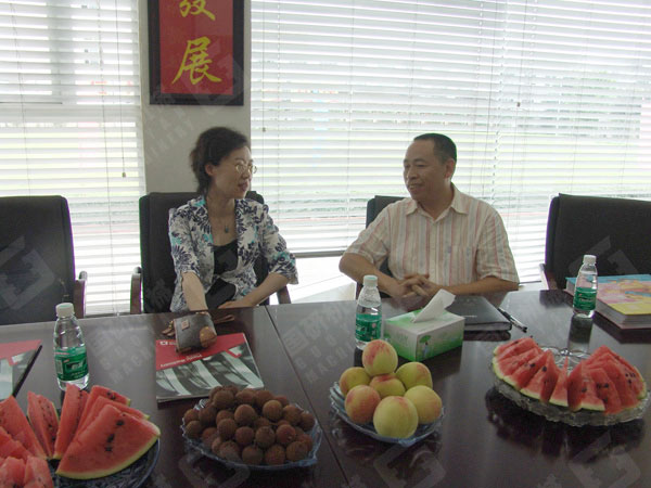 組織部長(zhǎng)潘文捷與公司董事長(zhǎng)王聲位親切交談