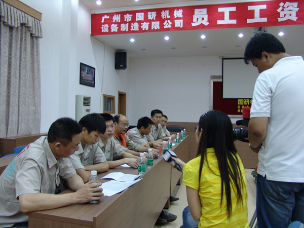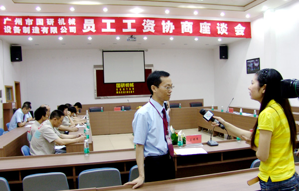 5月14日晚9:30分,中央電視臺新聞頻道“新聞1+1’ 節(jié)目以《工人工資到底怎么才能漲?》為題重點披露富士康等企業(yè)在工人工資方面存在的種種問題,同時正面報道了廣州國研機械通過建立員工工資集體協(xié)商機制解決員工工資問題的先進經(jīng)驗。